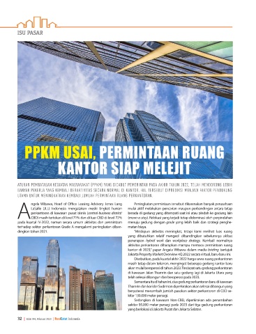 pada kuartal IV-2022, namun secara umum aktivitas dan permintaan menuju gedung dengan grade yang lebih baik dan strategi penghe-