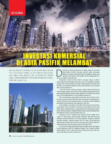 INVESTASI REALESTAT KOMERSIAL DI ASIA PASIFIK TURUN SEBESAR isebutkan, investasi langsung di sektor realestat komersial