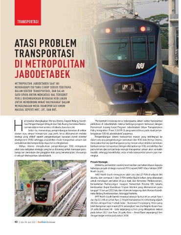 development (TOD) sehingga aksesibilitas moda transportasi umum dari dalam rencana pengembangan perkotaan dan TOD, kata Wahyu Utomo,